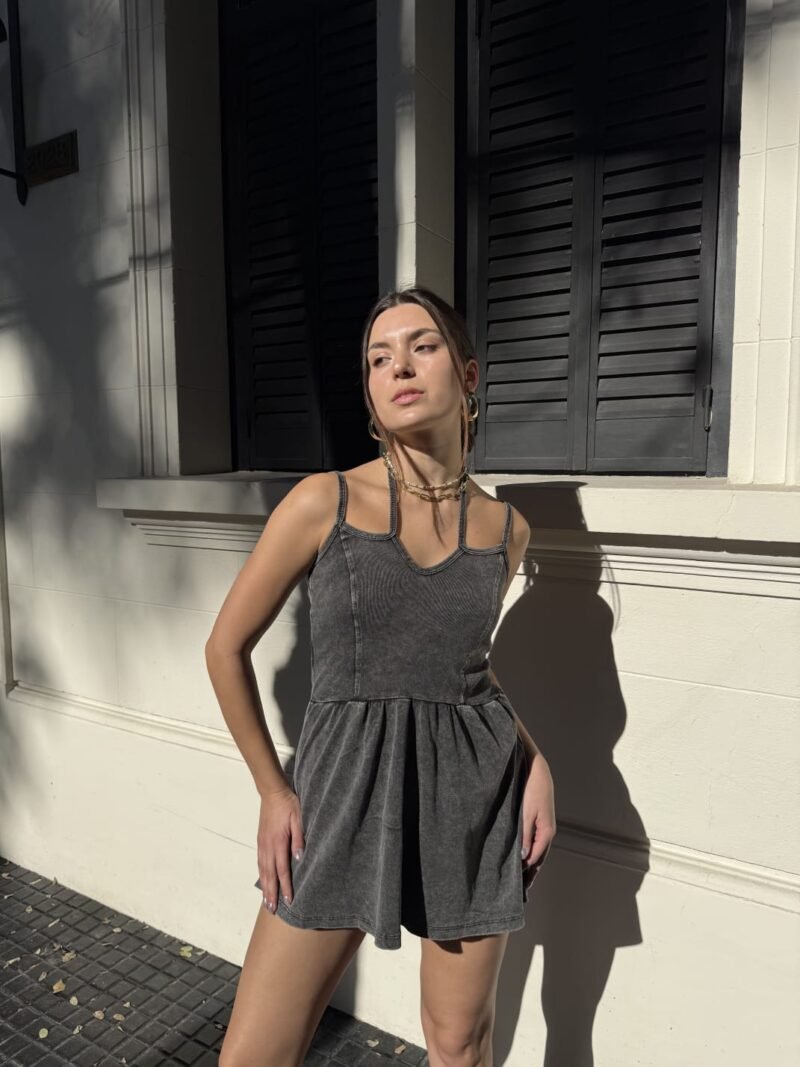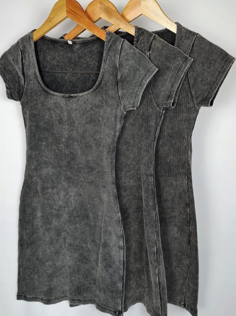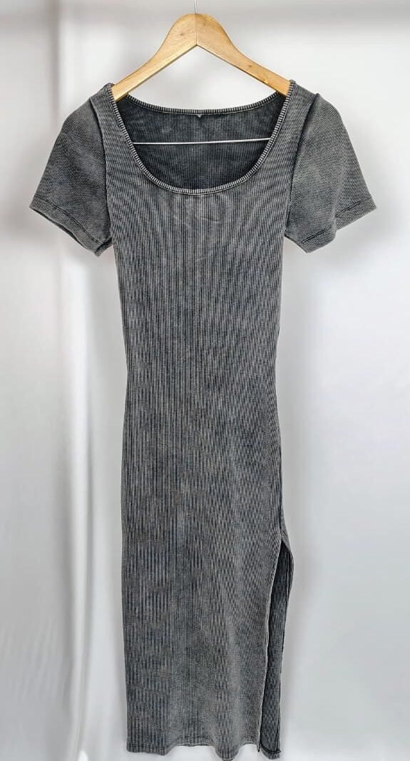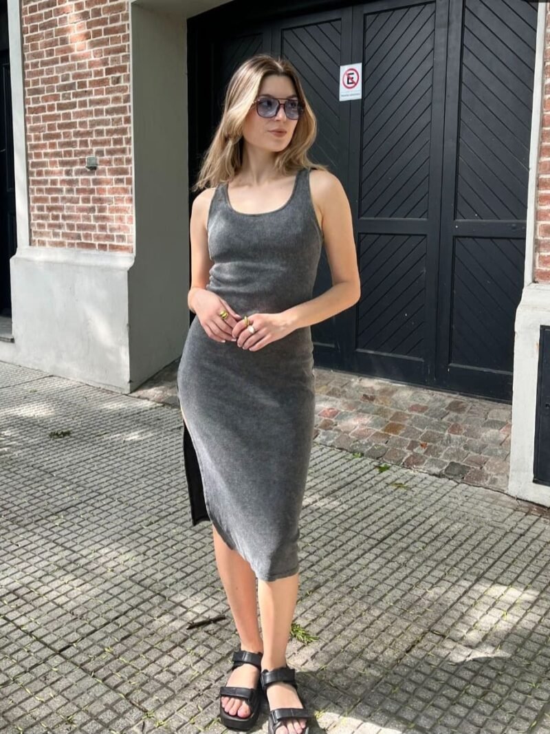 Vestido de morley prelavado con detalle de avertura en lateral .
