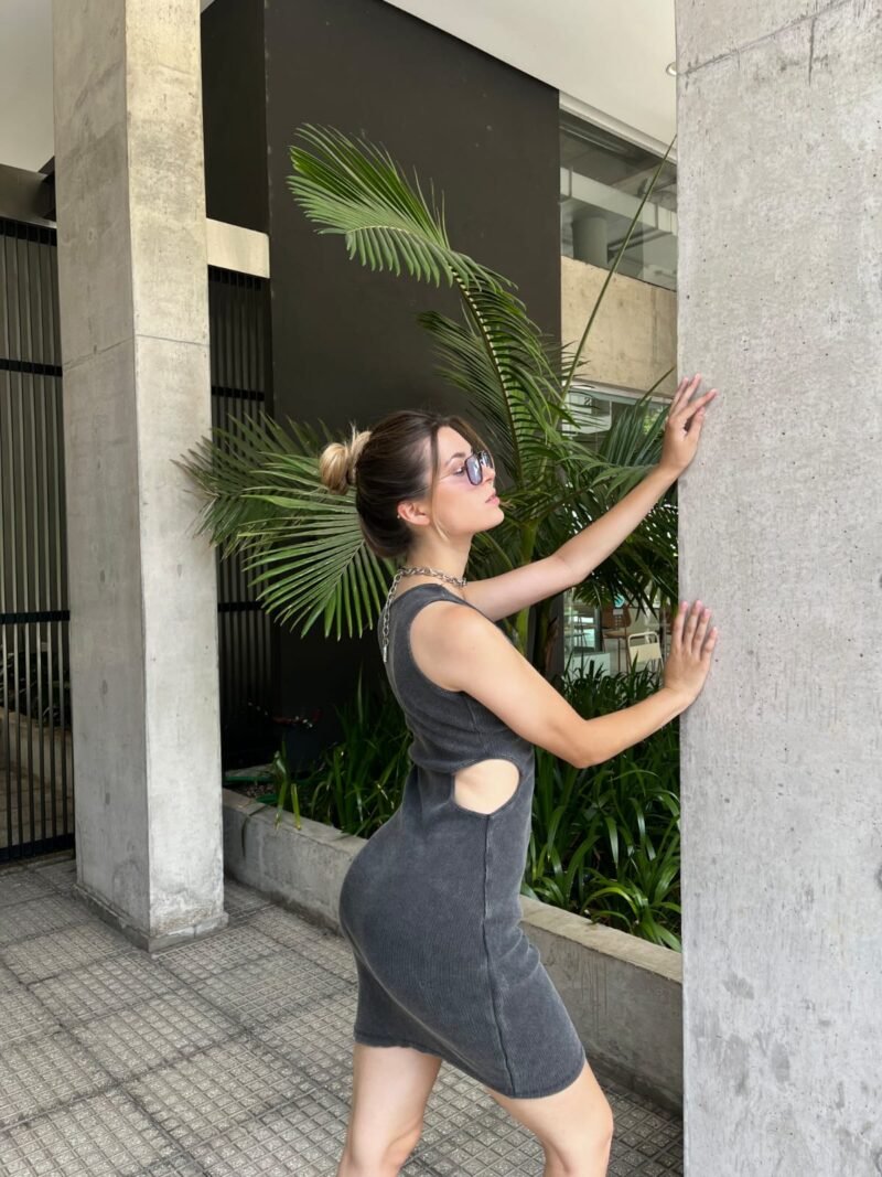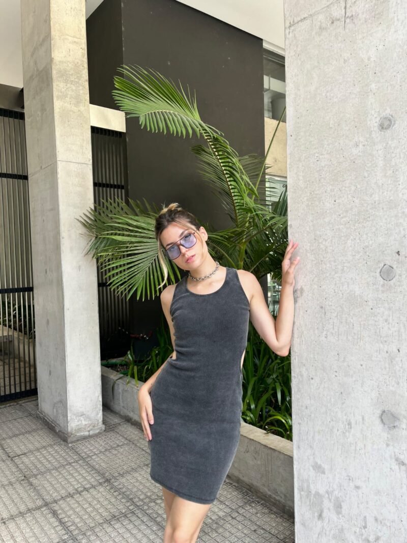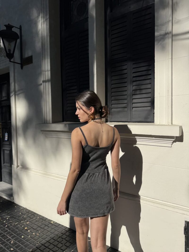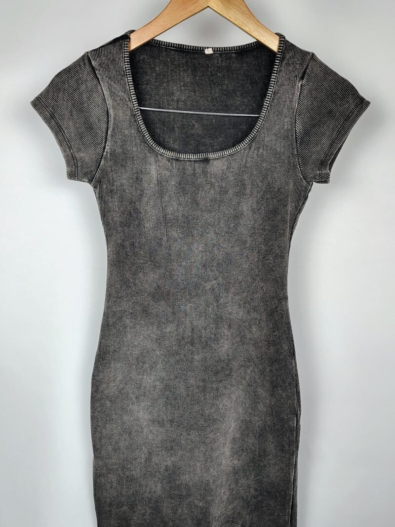 Vestido de morley prelavado con detalle de avertura en lateral .