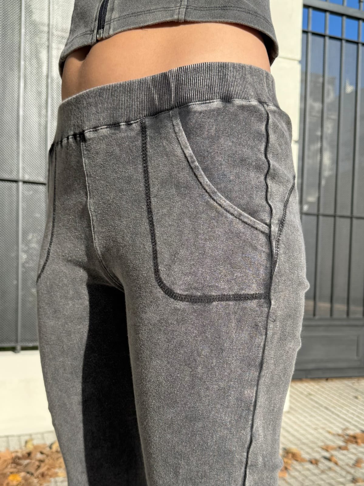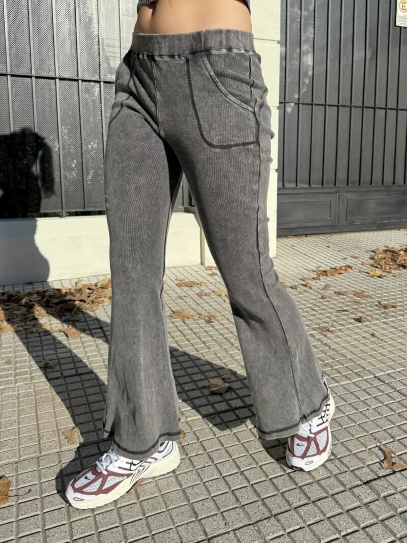 Calza oxford de ribb prelavado con bolsillos y detalle de cintura morley .